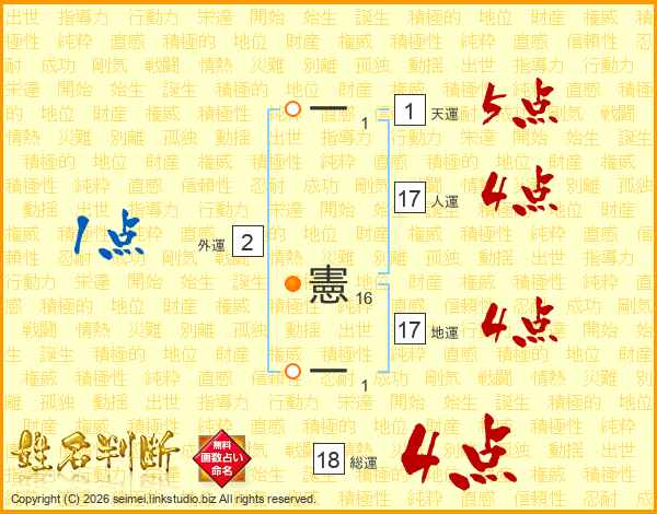 一憲一さんの総運は18画の4点!