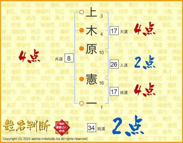 上(3画)木(4画)原(10画) 憲(16画)一(1画)