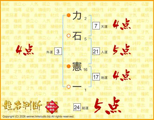 力石憲一さんの総運は24画の5点!