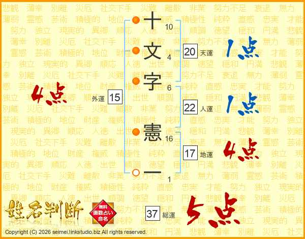 十文字憲一さんの総運は37画の5点!