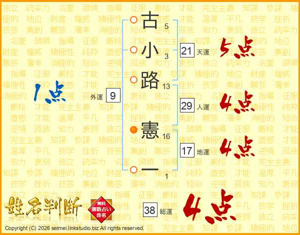 古小路憲一さんの総運は38画の4点!
