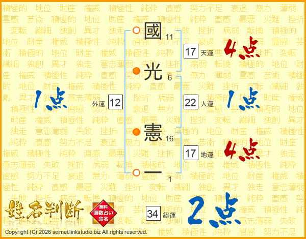 國光憲一さんの人運は22画の1点!