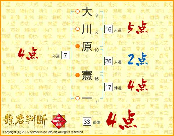 大川原憲一さんの総運は33画の4点!