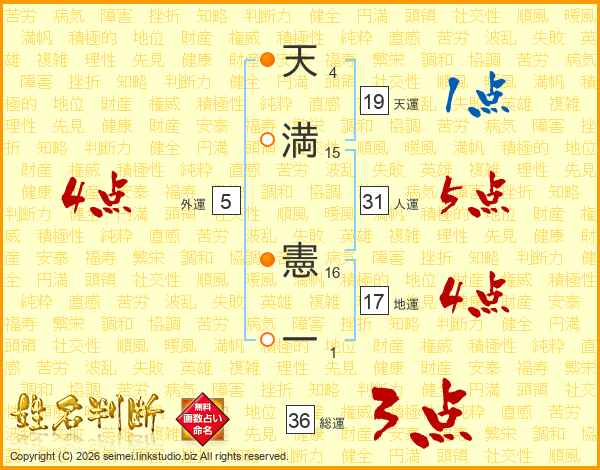 天満憲一さんの総運は36画の3点!
