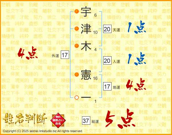 宇津木憲一さんの総運は37画の5点!