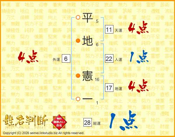 平地憲一さんの天運は11画の4点!