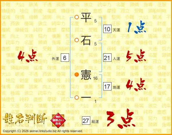 平石憲一さんの総運は27画の3点!