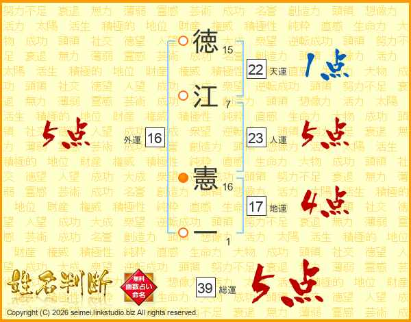 徳江憲一さんの総運は39画の5点!