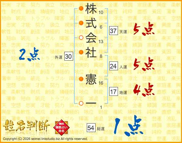 株式会社憲一さんの天運は37画の5点!