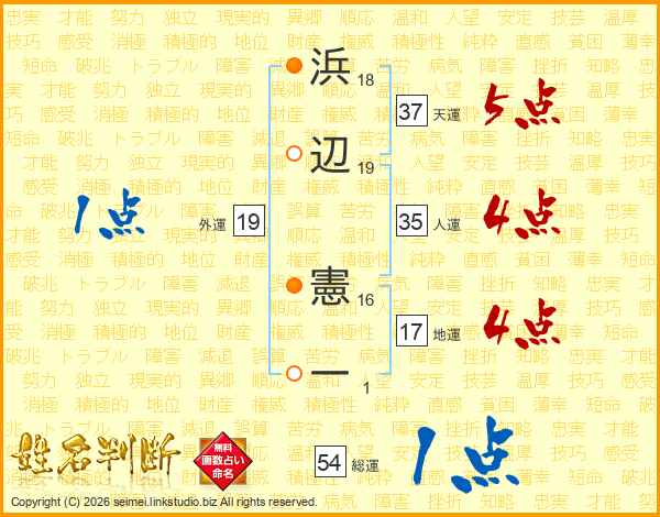 浜辺憲一さんの天運は37画の5点!