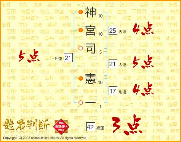 神(10画)宮(10画)司(5画) 憲(16画)一(1画)