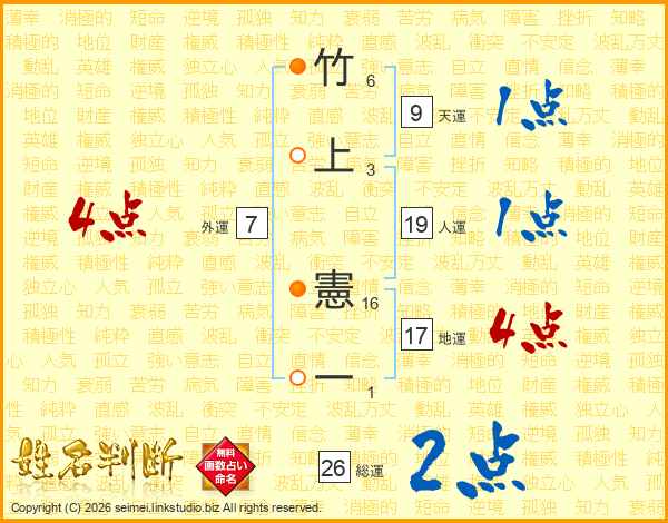 竹上憲一さんの総運は26画の2点!