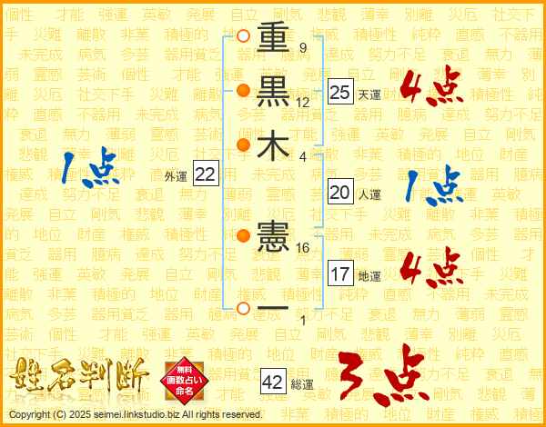 重(9画)黒(12画)木(4画) 憲(16画)一(1画)