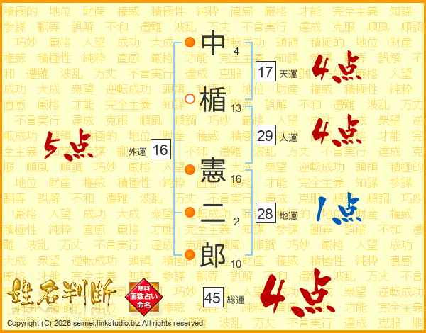 中楯憲二郎さんの総運は45画の4点!