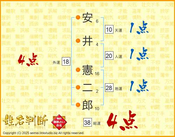 安井憲二郎さんの総運は38画の4点!