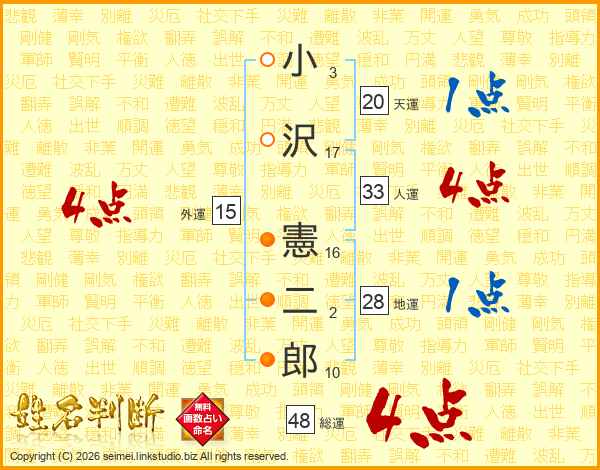 小沢憲二郎さんの総運は48画の4点!