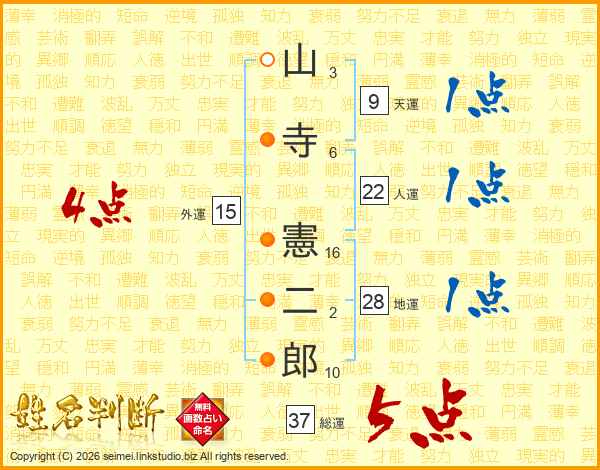 山寺憲二郎さんの総運は37画の5点!