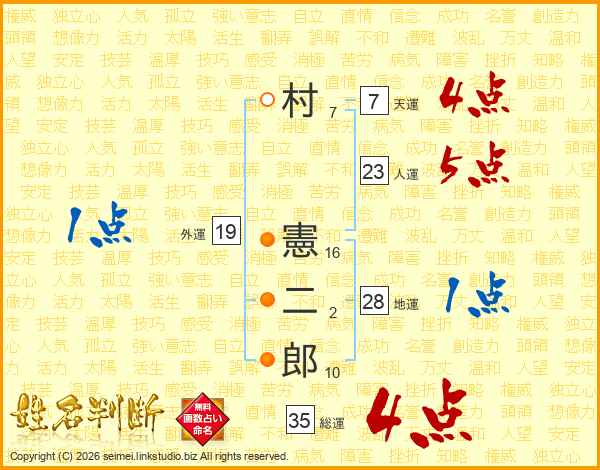 村憲二郎さんの総運は35画の4点!