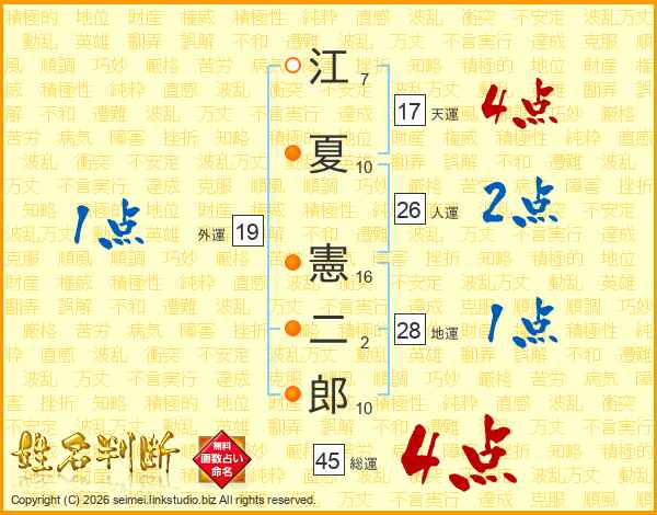 江夏憲二郎さんの総運は45画の4点!