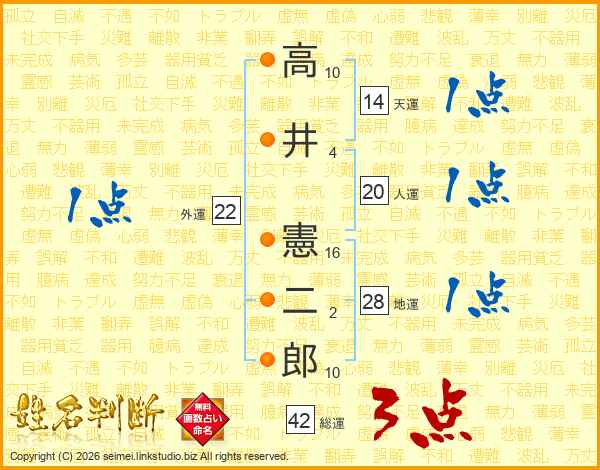 高井憲二郎さんの総運は42画の3点!