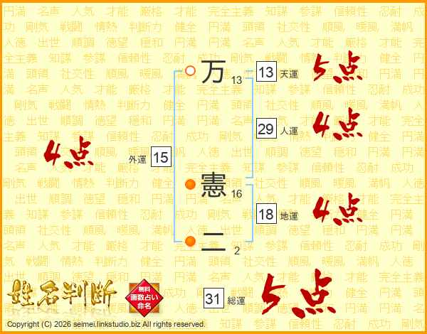 万憲二さんの天運は13画の5点!