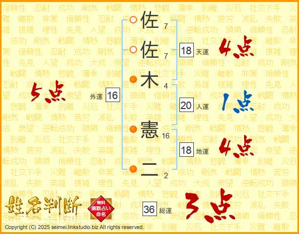 佐佐木憲二さんの総運は36画の3点!