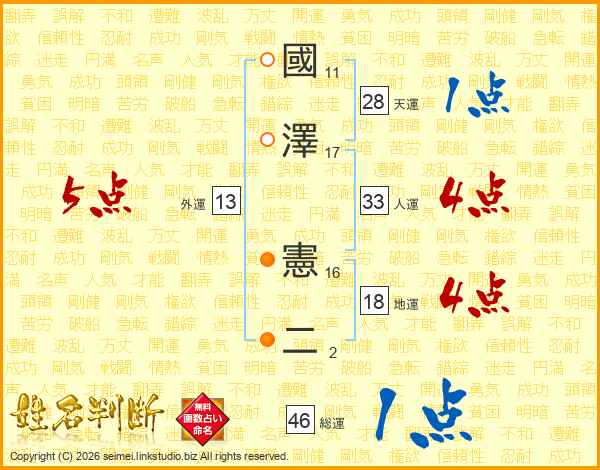 國澤憲二さんの総運は46画の1点!