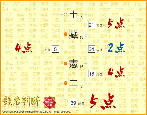 土藏憲二さんの総運は39画の5点!