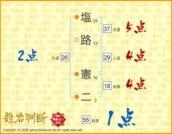 塩路憲二さんの総運は55画の1点!