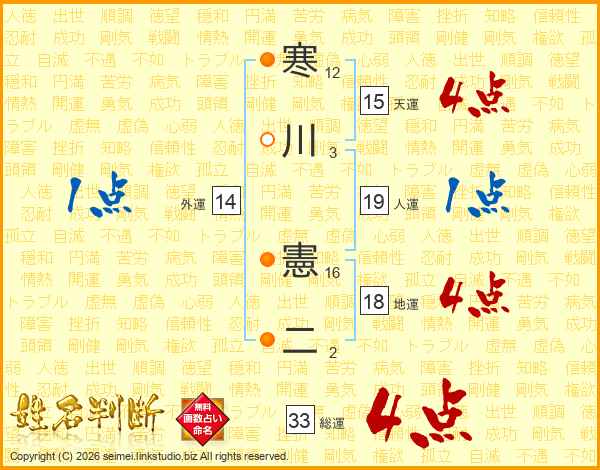 寒川憲二さんの総運は33画の4点!