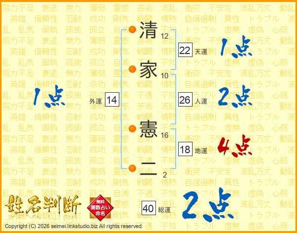 清家憲二さんの人運は26画の2点!