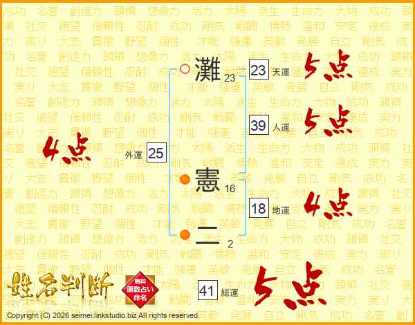 灘憲二さんの天運は23画の5点!