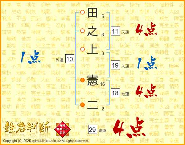 田之上憲二さんの総運は29画の4点!