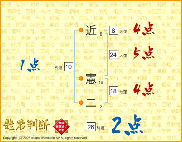 近憲二さんの総運は26画の2点!