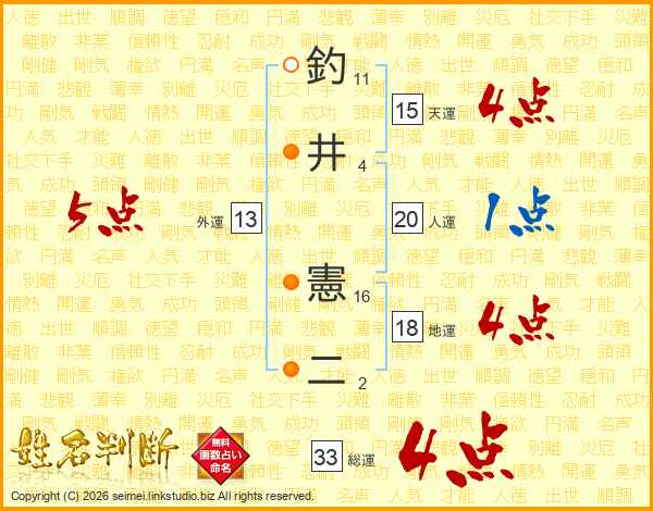 釣井憲二さんの総運は33画の4点!