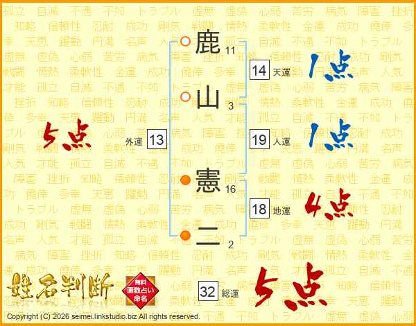 鹿山憲二さんの総運は32画の5点!