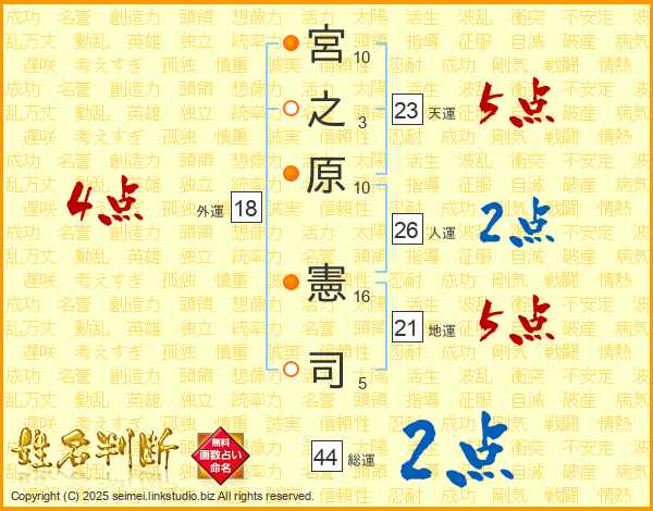 宮(10画)之(3画)原(10画) 憲(16画)司(5画)