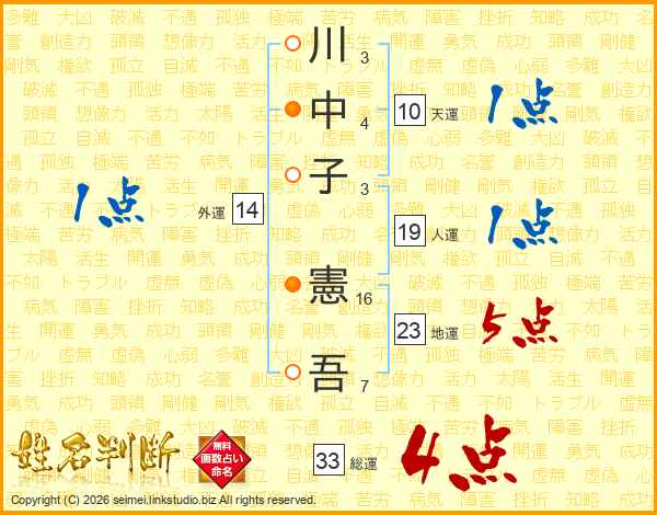 川中子憲吾さんの総運は33画の4点!