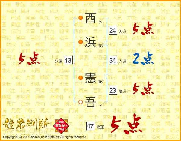 西浜憲吾さんの総運は47画の5点!