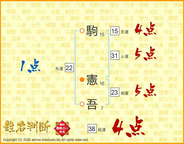 駒憲吾さんの総運は38画の4点!