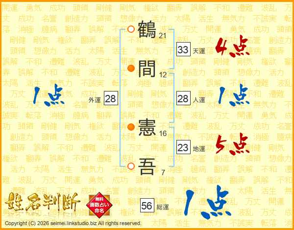 鶴間憲吾さんの総運は56画の1点!