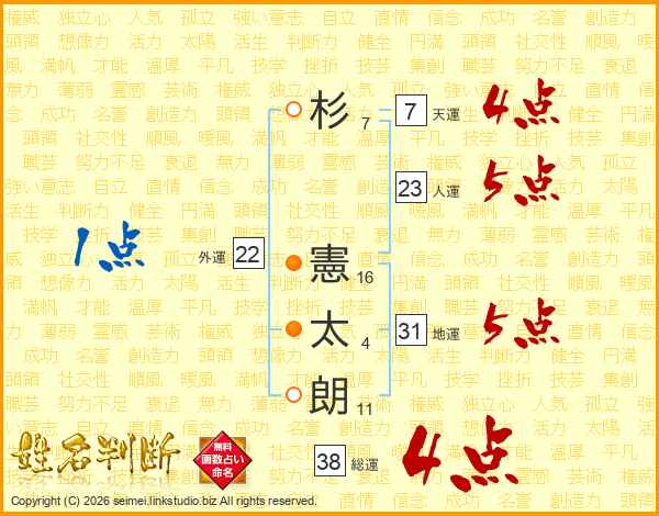 杉憲太朗さんの総運は38画の4点!