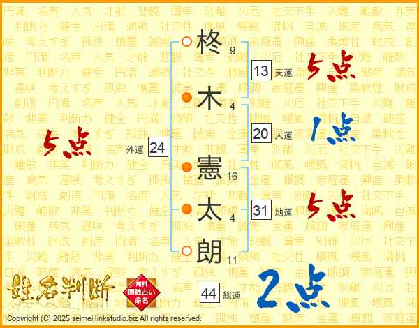 柊木憲太朗さんの総運は44画の2点!