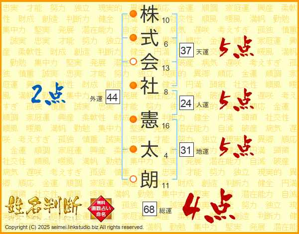 株式会社憲太朗さんの総運は68画の4点!
