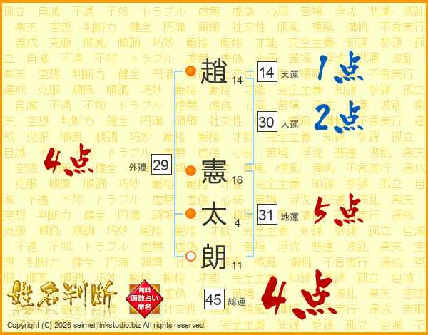 趙憲太朗さんの総運は45画の4点!
