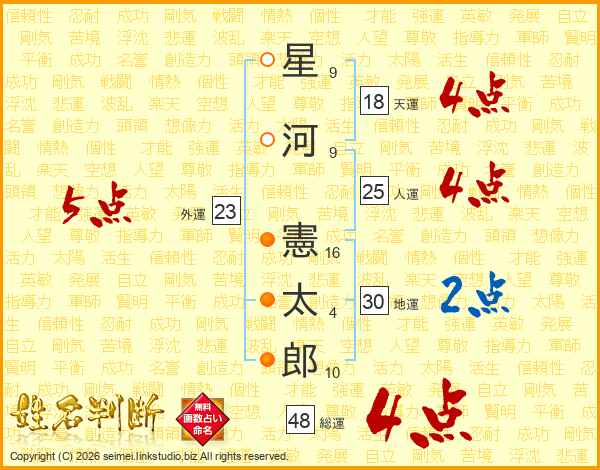 星河憲太郎さんの総運は48画の4点!