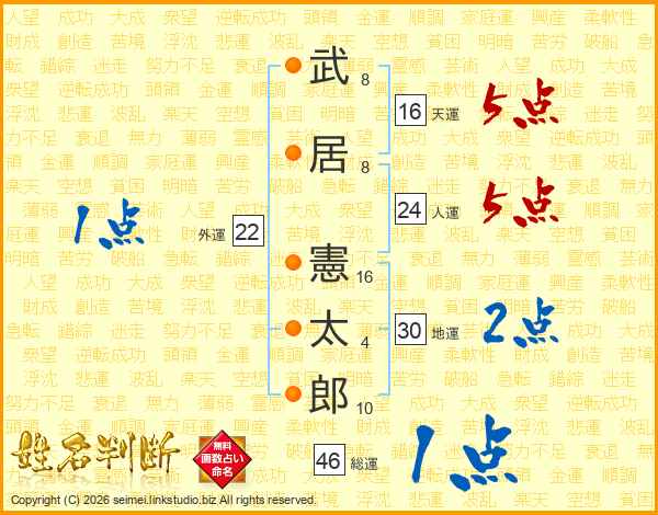 武居憲太郎さんの総運は46画の1点!