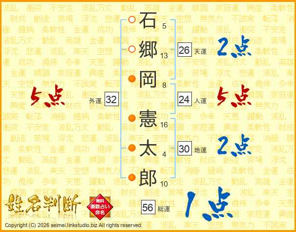 石郷岡憲太郎さんの総運は56画の1点!