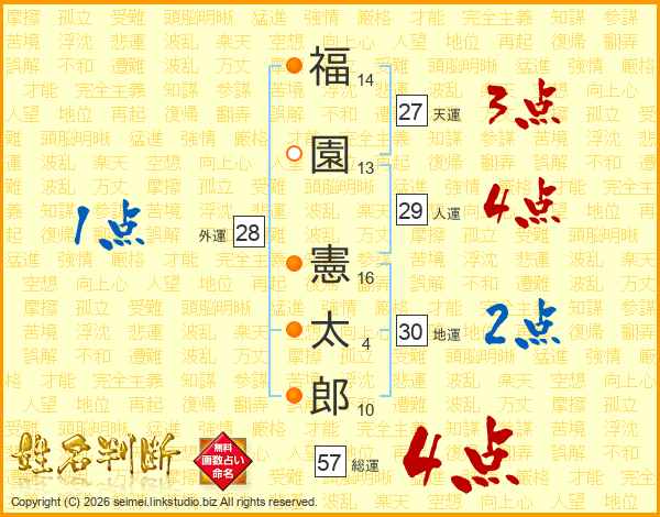 福(14画)園(13画) 憲(16画)太(4画)郎(10画)