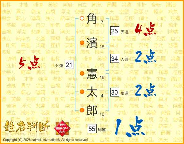 角(7画)濱(18画) 憲(16画)太(4画)郎(10画)